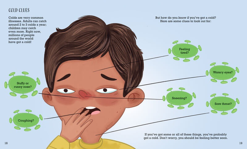 No one likes to get a cold—but everyone gets them once in awhile! Kids are often curious how they catch a cold and just how long they're going to be sick. This volume answers those common questions and more, all told in an illustrated story starring a kid readers can relate to. Science information about germs, vaccines, and symptoms of the common cold are included in understandable language. The main content also shares tips to treat a cold and ways to stop its spread at home or school.