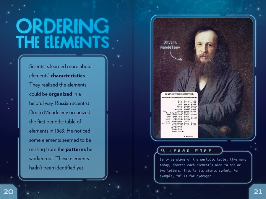 Everything around us is made of elements, substances that can't easily be broken into smaller parts or changed into other substances. However, elements can be combined. That's how we have the air we breathe, the clothes we wear, the tools we use—not to mention our bodies! All these things are a fascinating combination of elements. This beneficial volume supports readers as they learn about elements and how they connect to make molecules, building the matter that surrounds us. The dynamic text and eye-catching design include fun fact boxes, labeled diagrams, and a concluding graphic organizer.