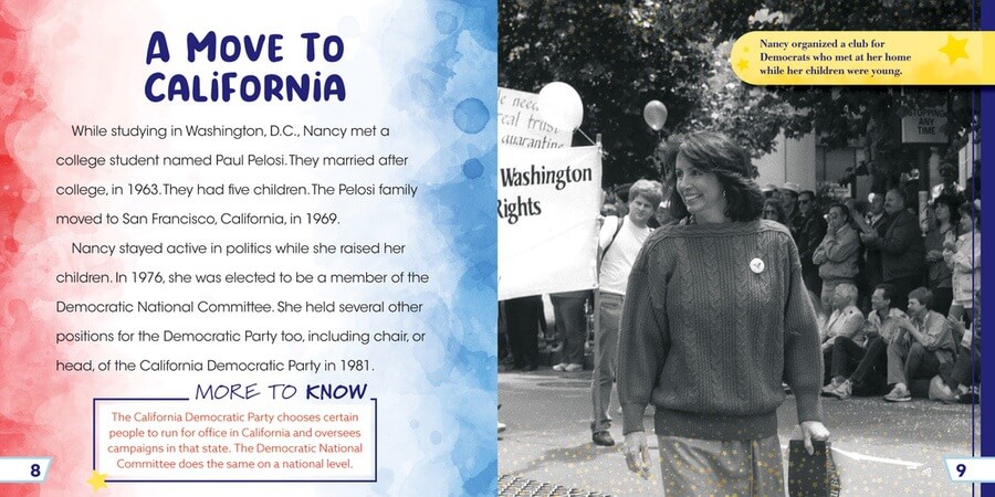 Democratic politician Nancy Pelosi represents California in the U.S. House of Representatives. She was the first female Speaker of the House too. Pelosi has long been one of the more effective lawmakers on Capitol Hill. Readers of this accessible biography will find out how Pelosi rose to her position and her accomplishments over the years. Colorful photographs, More to Know fact boxes, and a timeline reinforce key ideas in this informative volume, which supports social studies curricula and aids knowledge building, a key component of the science of reading.