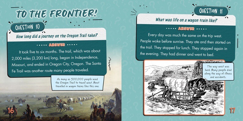 During the 1800s, hundreds of thousands of people packed up their families and moved west, many on the Oregon Trail. These settlers were searching for many things, from more space to new lives, and even gold! But how did Americans move their possessions from one place to the other? Did they have a right to stay on the land they found? What did their day look like? Young readers explore these questions and more in this unique question-and-answer approach to an important era of U.S. history. Historical images accompany the at-level, curricula-supporting text.