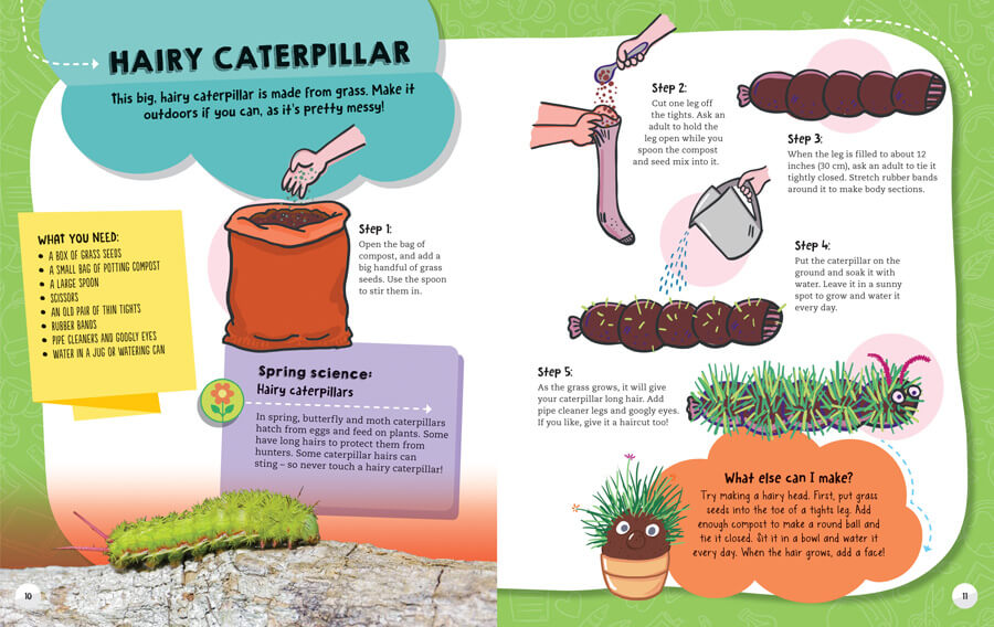 Spring is the season of new beginnings. Green leaves grow on trees, flowers pop up from snowy ground, and rainbows can sometimes be glimpsed after spring showers. This motivating volume uses crafts to teach about the scientific concepts connected to the season. Readers will follow easy-to-understand steps to complete each activity, using readily available materials. Sidebars offer more about the science information behind the crafts, including facts about rain, insects, eggs, and more. This high-interest, STEAM-focused book is a perfect and beneficial addition to any science collection.