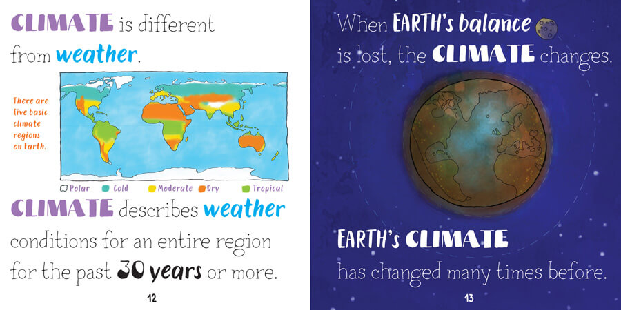 Climate change is a concept kids are likely to have heard, whether on the news, from grown-ups around them, or in school. However, understanding climate and how it can change because of people's activities on Earth can seem complicated. This beautiful book breaks down climate change for emerging readers in an accessible way through detailed images, diagrams, and main content written in language perfect for practicing independent reading. The main content supports both Earth science curricula and environmental science learning, as well as engages readers with the fate of the natural world around them.